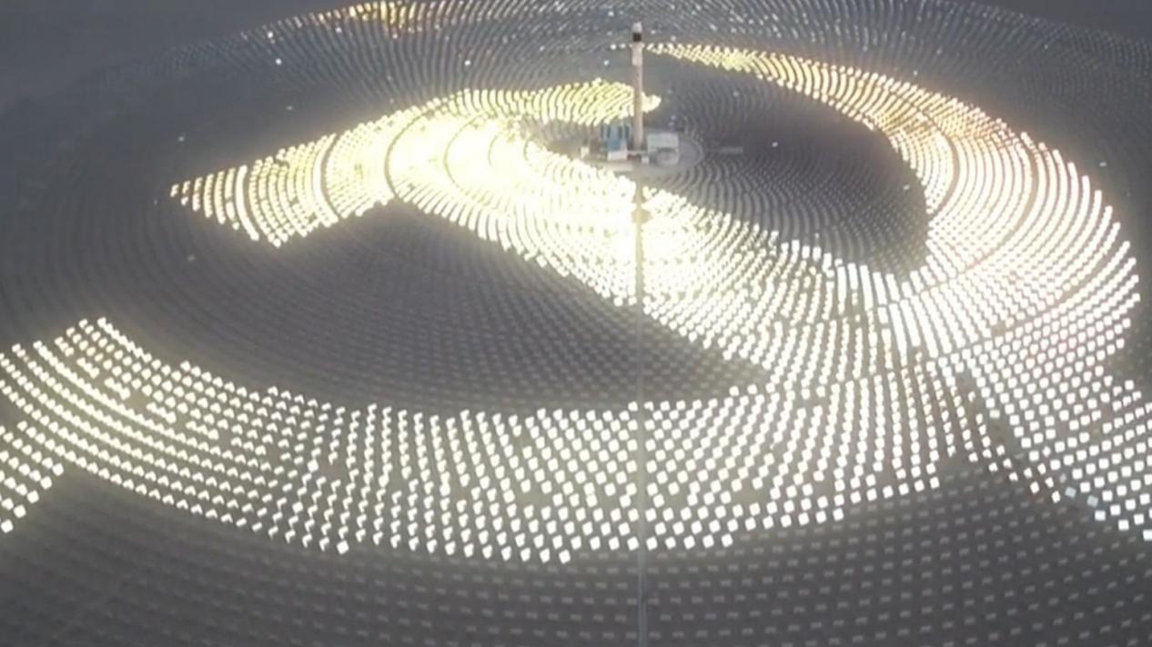 ·甘肃敦煌熔盐塔式光热电站通过智能化编程,调动3700多面定日镜,拼组巨幅标语和党徽。