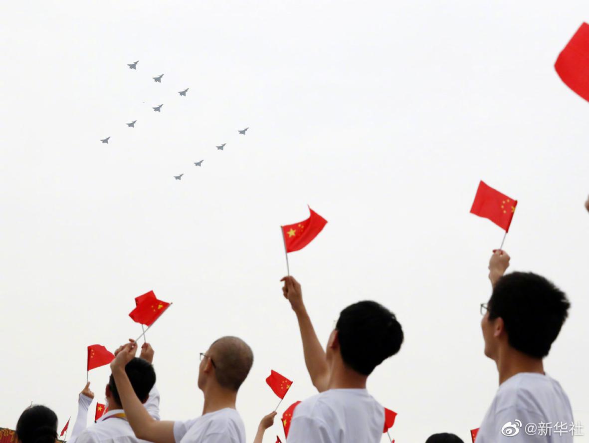 震撼画面!71架战鹰飞过天安门广场,组成“71”“100”字样。