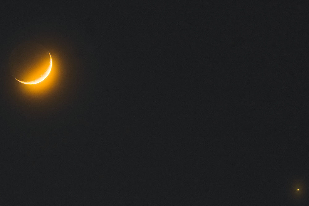 ↑天津市天文爱好者王硕2019年12月29日拍摄的金星合月。(本人供图)