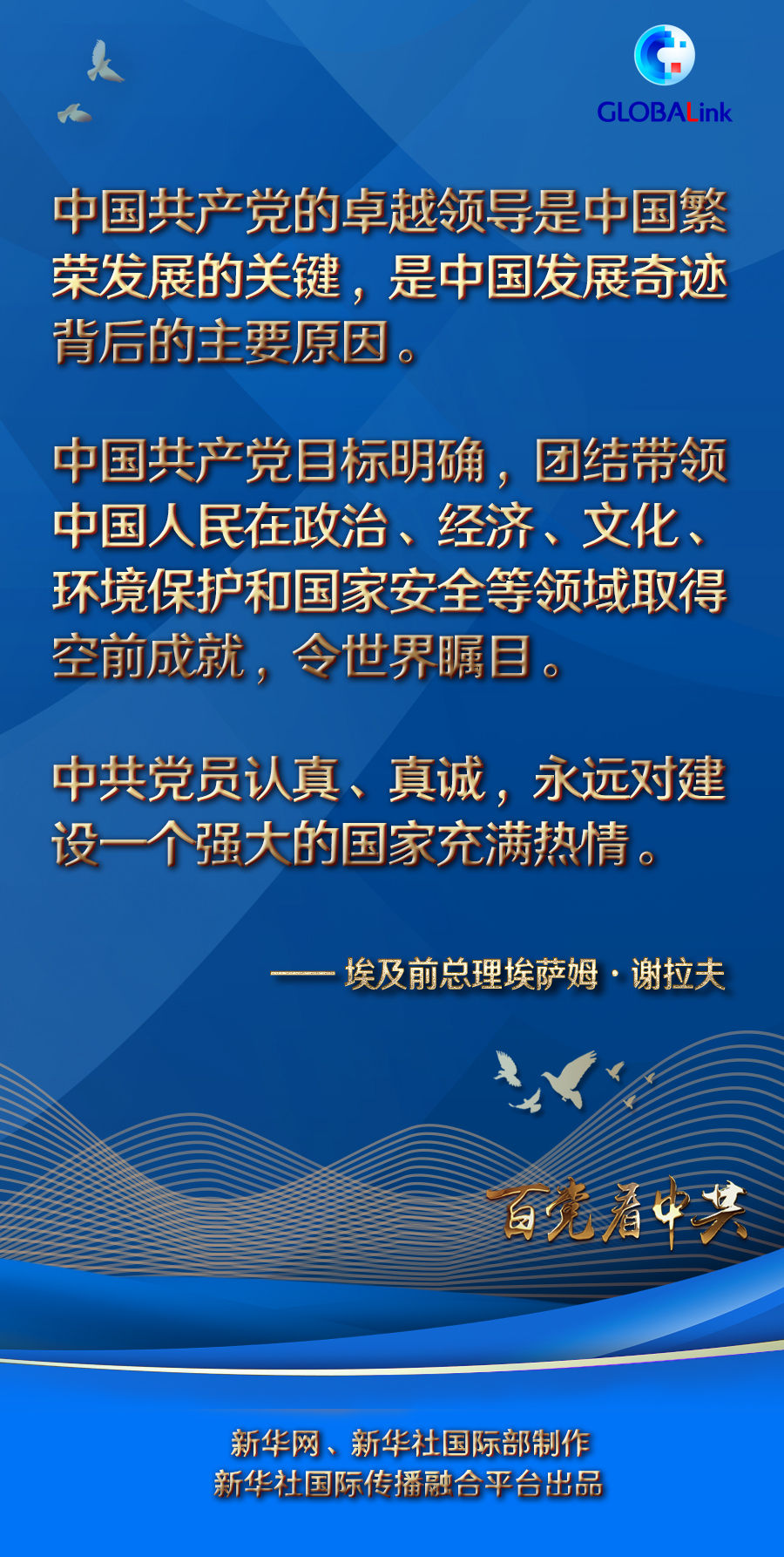 新华社开罗7月2日电 埃及前总理埃萨姆·谢拉夫日前在开罗通过视频方式接受新华社记者专访时表示,中国共产党的卓越领导是中国繁荣发展的关键,是“中国发展奇迹背后的主要原因”。