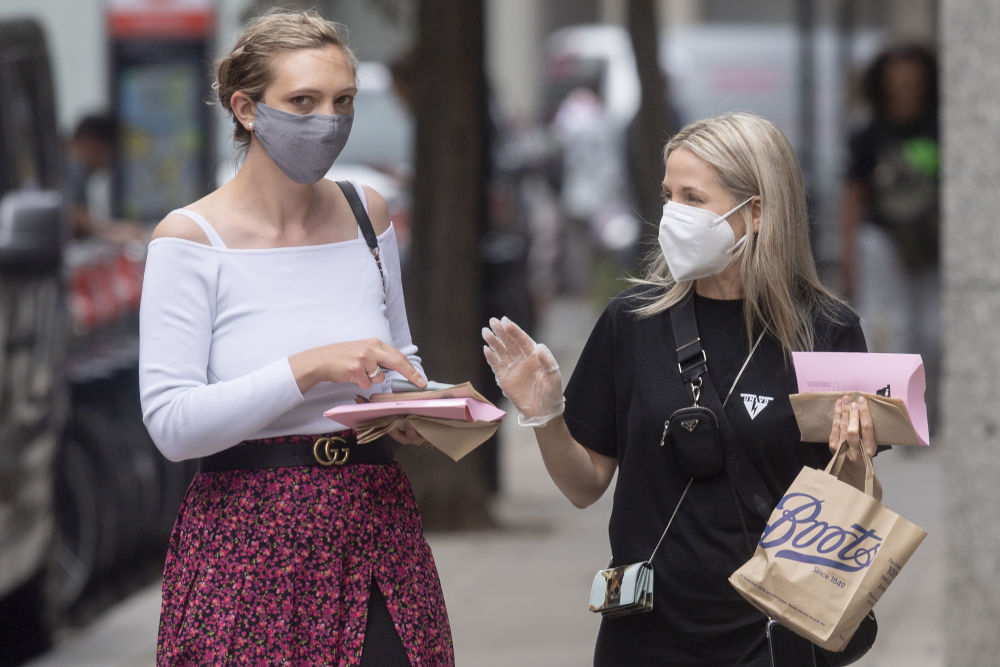 6月17日,戴着口罩的女子走在英国伦敦街头。新华社发(雷伊·唐摄)