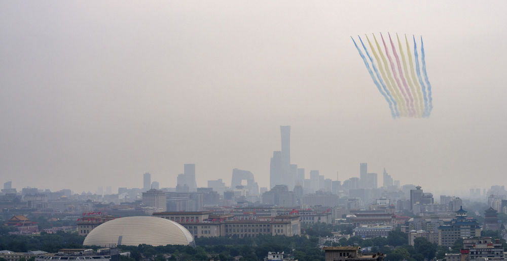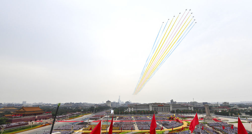 7月1日上午,庆祝中国共产党成立100周年大会将在北京天安门广场隆重举行。这是飞行庆祝表演。新华社记者 邢广利 摄