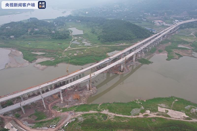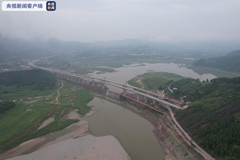今天(7月2日)上午,经过900多个日夜的奋战,城开高速(城口至开州高速公路)全线涉水最宽、最深的桥梁——澎溪河特大桥,实现双幅架通,为2021年赵家至谭家50公里先行通车段通车打下了坚实基础。