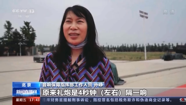音响保障指挥部工作人员 孙峥:原来礼炮是4秒钟(左右)隔一响,现在是3.7秒(左右)隔一响,听着没事,没关系,但是对声音的录制 扩声都是有影响的,他的反射声会很快返到你的直达声里面。
