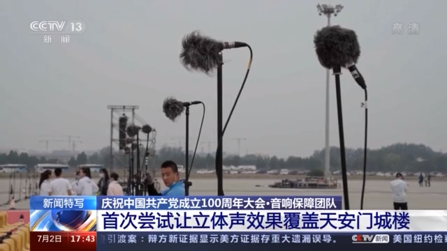 在庆祝中国共产党成立100周年大会上,战机呼啸而过的轰鸣声,国旗护卫队铿锵有力的脚步声、震耳欲聋的礼炮声,还有合唱团和献词团的少年们满怀深情的歌颂声……这些声音元素个个清晰、饱满,在天安门广场上共同奏响了一曲百年大党 风雨历程的时代交响曲,带给观众极大的听觉震撼。而承担将这些动人心魄的“好声音”,准确、清晰地传递到每个现场观众耳朵里的,就是由中央广播电视总台负责牵头的音响保障团队。