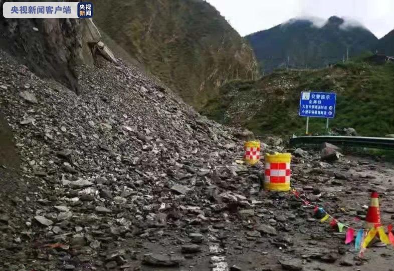 国道227线四川甘孜州稻城段发生山体滑坡 交通中断超100米