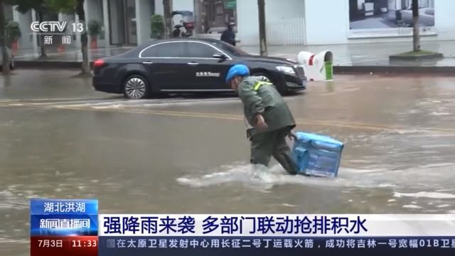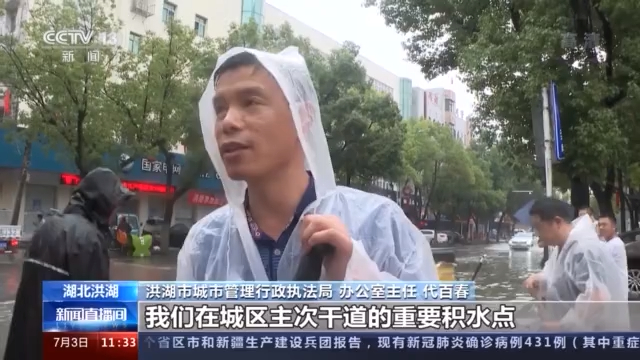 洪湖市城市管理行政执法局办公室主任 代百春:我们在城区主次干道的重要积水点,每个出水口都安排了人员,配合做好排水工作。