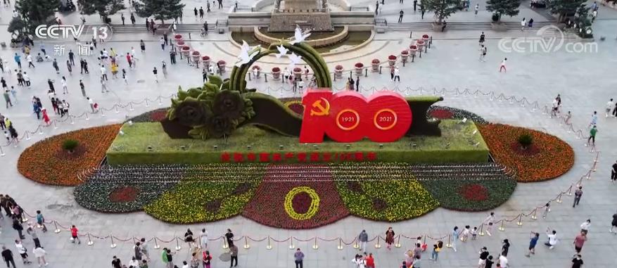 在黑龙江哈尔滨市防洪胜利纪念塔广场,以庆祝建党百年为主题的大型花坛,这几天吸引了大批市民和游客前来观赏。在五颜六色的花朵装点之下,整座广场花团锦簇、流光溢彩。大家举起手机打卡拍照,定格一个个喜气洋洋的瞬间。在中央大街的辅街上,大家纷纷拍照,“我和党旗合个影”记录美好时刻。