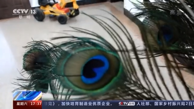 在管护站,护林员展示了前一阵巡山时捡到的绿孔雀尾羽。