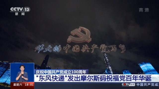 在艰苦卓绝的战争年代,无数革命先辈就是用一串串这样的代码,送出一条条重要情报。今天摩尔斯码再度发出,它传递的又是怎样的信息呢?这滴滴答答声,翻译成文字就是:“跨越山海百年,煌煌中华气象万千。百年大党,风华正茂,国富民强,山河无恙。海晏河清,人寿年丰,公辞百年,俯视九州,今日盛世,可如您所愿。”
