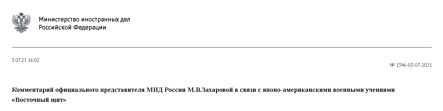当地时间7月3日,俄罗斯外交部网站发表声明,阐述俄方在美日“东方之盾”联合军演问题上的立场。声明强调,俄罗斯密切关注日美此次联合演习。俄方注意到,6月29日日本防卫大臣岸信夫在北海道公开声称,北方方向对日本“至关重要”,而日本北方只有一个邻国即俄罗斯。声明指出,日方通过其防卫大臣的具体行动和言论,表明日本在军事领域的实际目的。俄方认为,日本提出的确保亚太地区和平稳定的倡议,包括“开放印太”等概念实际上都在服务其与美国军事同盟的狭隘利益。声明说,日方放弃与俄罗斯就双方合理的安全关切进行建设性对话,也不再讨论在该领域建立信任措施的方法。俄方将密切关注日本当局的做法,并在必要时采取适当的应对措施。