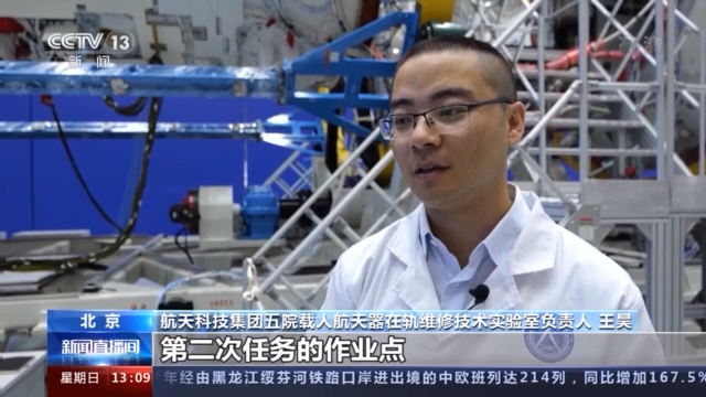 航天科技集团五院载人航天器在轨维修技术实验室负责人 王昊:这次作业点是在大柱段的前锥,咱们做一个就是全景摄像机支架,我们要把全景摄像机抬升。抬升了之后,它看到的视场视野就更好,能够利于我们的一些舱外活动,所以把它排在了前面。就是把全景摄像机拆下来,再安一个支架,然后再把全景摄像机安上去,把相应的电缆连接再连接恢复好。