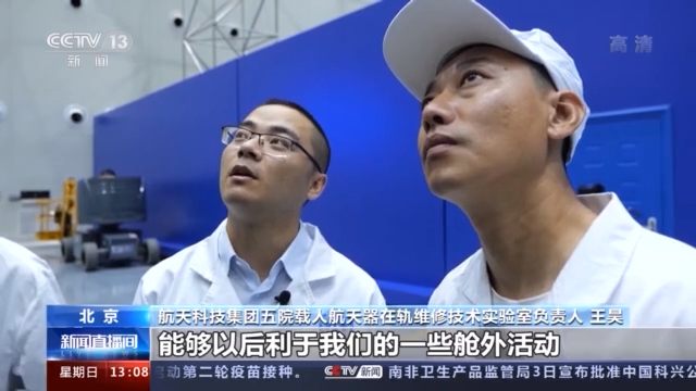 航天科技集团五院载人航天器在轨维修技术实验室负责人 王昊:出舱活动无论是国际空间站还是中国的空间站,都是在轨组装建造的一个必要技术。现在我们是舱段空间站组装建造、抬升摄像机支架,这相当于完善基础设施,后续可能大量转向空间试验方面。