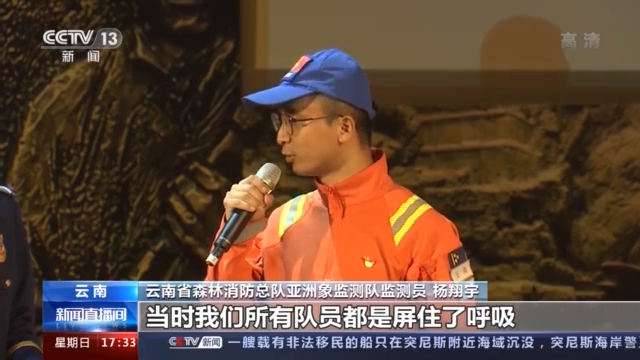 云南省森林消防总队亚洲象监测队监测员 杨翔宇:象群离我们的距离只有十到二十米的时候,当时我们所有队员都屏住了呼吸,但是其实大象对我们是爱搭不理的、不理不睬的。