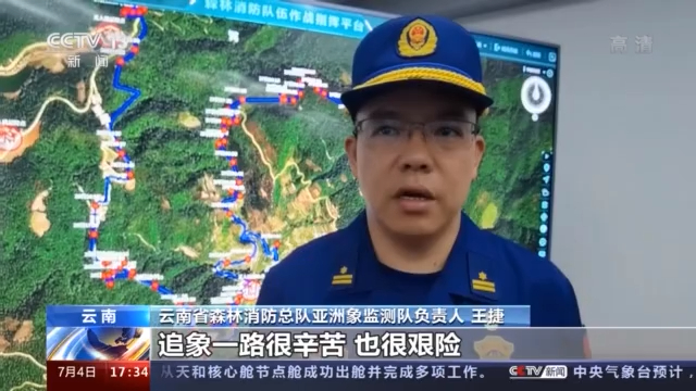 云南省森林消防总队亚洲象监测队负责人 王捷:追象一路很辛苦,也很艰险,但我们也乐此不疲。看到大象、小象一家人整整齐齐,和谐友爱,我们再苦再累也值得。