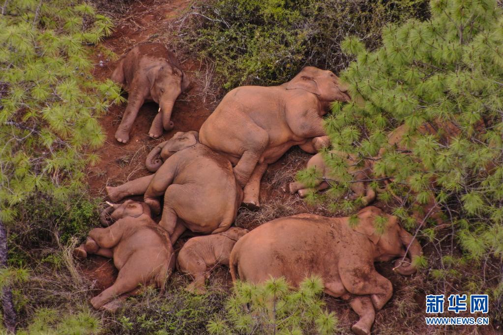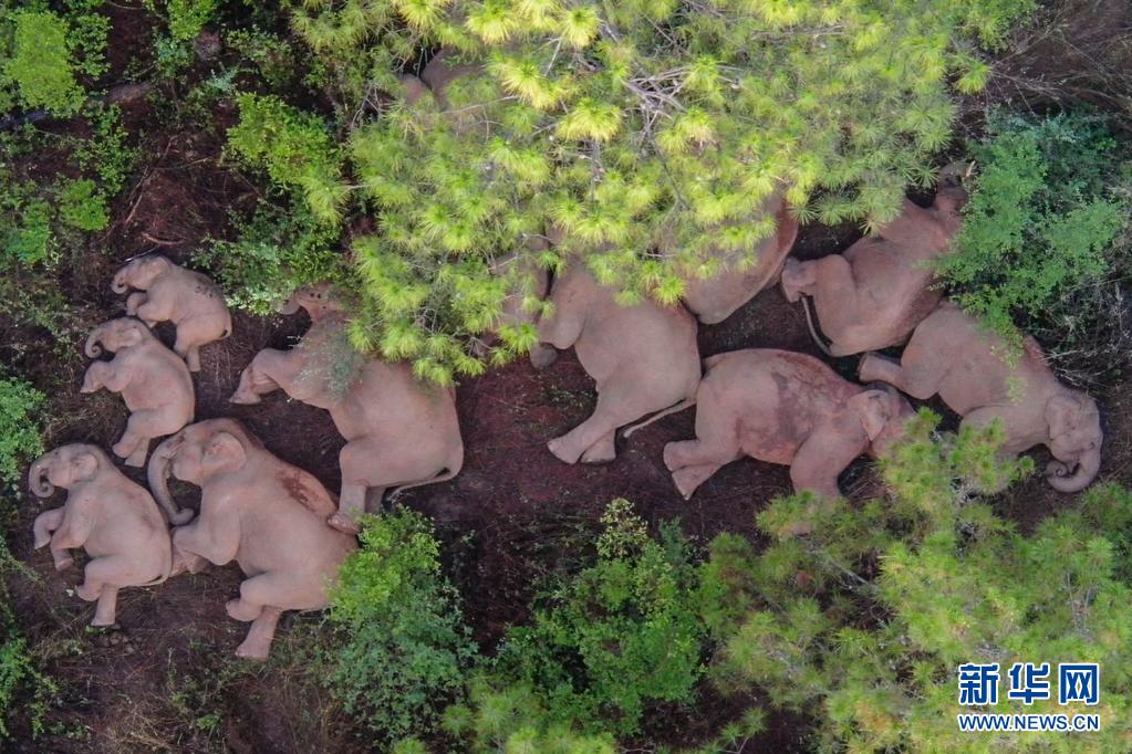 6月13日在云南省玉溪市易门县十街乡拍摄的象群(无人机照片)。新华社发