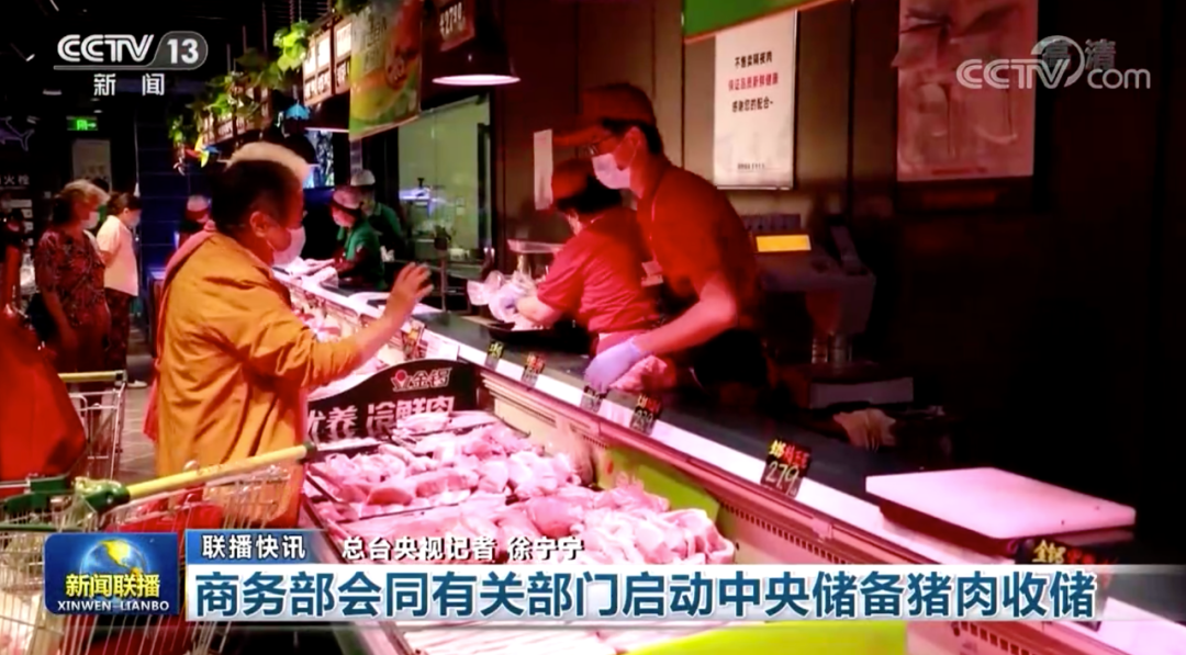 今天联播有条消息说,商务部等部门近日启动中央储备猪肉收储工作,第一批收储的量是2万吨。中央储备这次出手买肉,目的是要稳价。