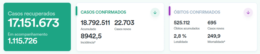 截至当地时间7月5日18时,根据巴西卫生部发布的数据,巴西新冠肺炎确诊病例累计达18792511例,较前一日新增22703例;累计死亡525112例,较前一日新增695例;累计治愈17151673例。