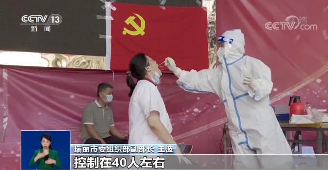 瑞丽市委组织部副部长 王波:我们现在为了减少人员的聚集和交叉,主要采取的是分时段分楼层的通知,把整个检测的现场的人数控制在40人左右。然后按照一米二左右的距离,有序地参加核酸检测。