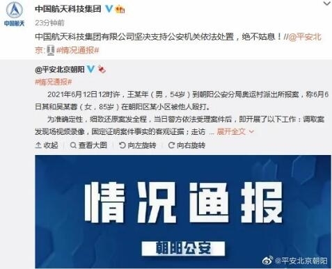 据中国航天科技集团官方微博消息,针对警方通报的航天投资控股有限公司党委书记、董事长张陶酒后打人被刑拘一事,中国航天科技集团有限公司表示坚决支持公安机关依法处置,绝不姑息!