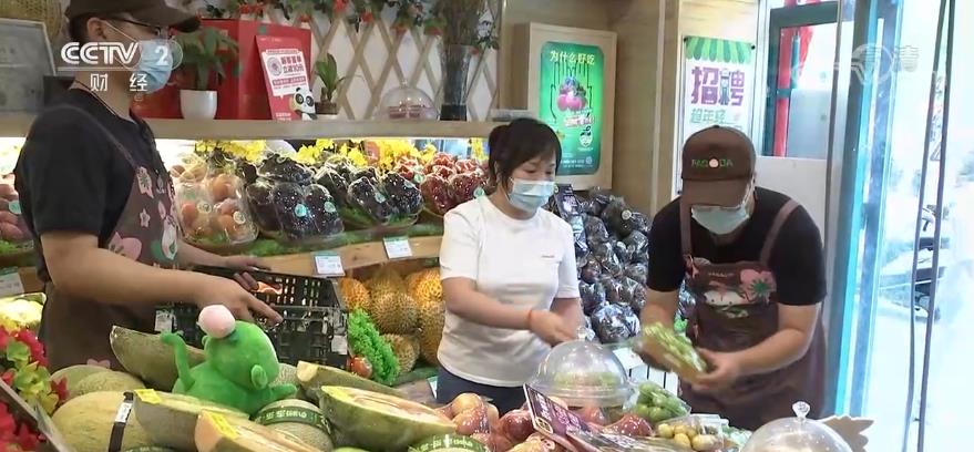 记者在北京一家水果连锁门店看到,工作人员正在将刚刚采购的西瓜、葡萄、桃子等鲜果摆上货架。负责人杨文凤告诉记者,6月份至今,北方时令鲜果和南方热带水果均进入上市高峰期,水果供应数量充足、品种丰富。