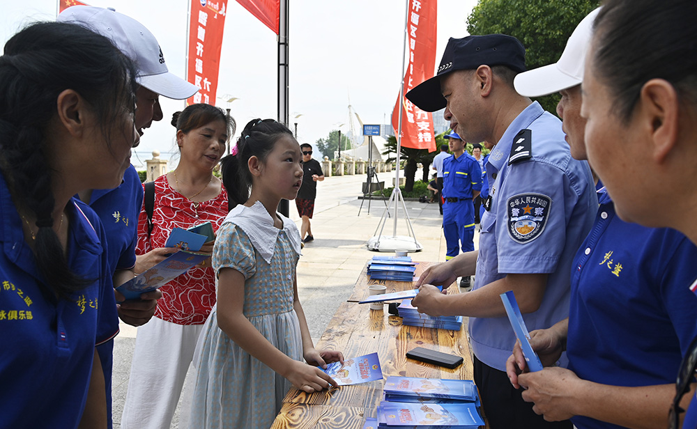 入夏以来随着气温攀升,游泳成了很多人喜爱的消暑娱乐活动之一。为进一步筑牢防溺水的安全防线,7月6日上午,长沙市公安局治安管理支队水警大队举行2021年度防溺水安全宣传日活动,发布夏季防溺水安全通告。