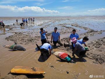 #浙江台州临海12头领航鲸搁浅#【一场关乎生命的救援!#浙江台州警民合力紧急营救搁浅鲸鱼#】6日上午8时许,警方接到群众报警,称浙江台州临海头门港海域发现十余头疑似海豚的动物在海滩上搁浅。当地公安、消防、渔政等部门与附近热心渔民迅速展开营救。