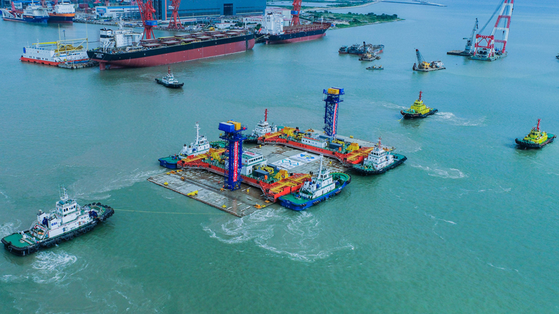 此次浮运演练时间紧凑,且浮运航道的水文条件复杂多变。为保障此次浮运演练的航道通畅,作为“开路先锋”的疏浚队伍,通过建立健全的协调机制,多次进行维护扫测检查工作,实时监控浮运演练区域淤泥回淤情况,及时反馈测量数据,调整船舶施工位置,并增加每日海上勘测频率,提高船舶疏浚施工工效,保证港池、航道的畅通。