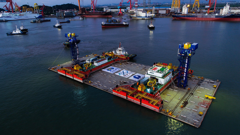 在本次实体演练中,E32管节将从广州南沙龙穴岛船厂港池寄放区浮运至广州港NG2灯浮后原路返航,单程总里程6.072公里(3.28海里)。演练作业于7月5日凌晨5:00在龙穴港池内拖轮开始接拖起计,至18:30管节绞移至港池寄放区进行锁定,总耗时约13.5小时。