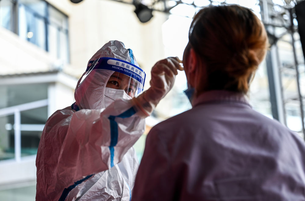 7月5日,防疫人员为市民进行核酸检测采样。新华社记者 王冠森 摄