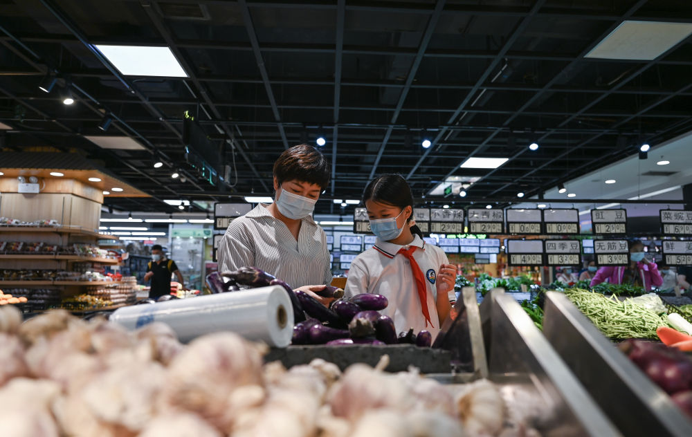 7月6日,市民在瑞丽一家超市内购买生活物资。新华社记者 王冠森 摄