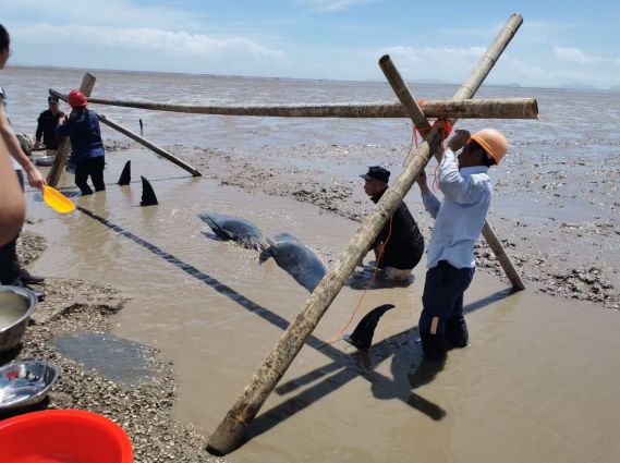 12头类似鲸豚的“大鱼”搁浅