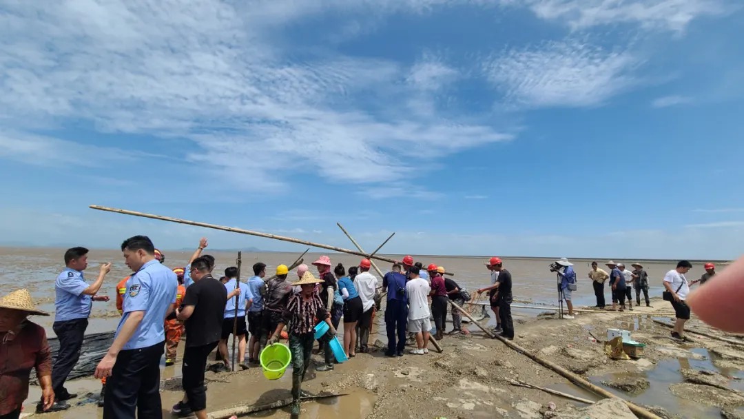 当地公安、渔业、消防救援等部门的救援人员