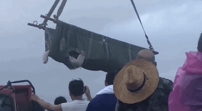 当天傍晚,最后一头瓜头鲸被救援上岸
