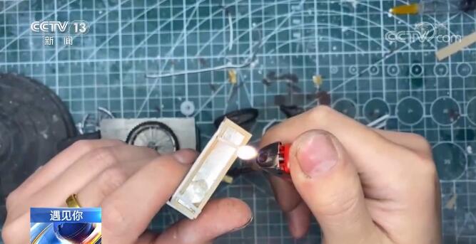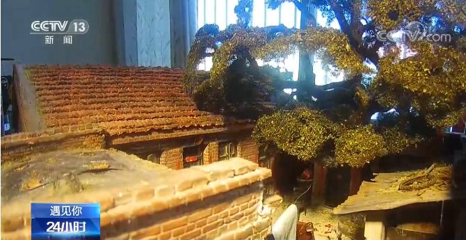 半年多的时间里,“奶奶家院子”一点点呈现出来,这其中百分之90的物件都是申鹏手工制作的。为了表现岁月感,他还用颜料和砂纸一遍遍打磨做旧。终于,院子模型达到了申鹏理想中的效果,他也不再向家人保密,把这座“奶奶家院子”展现在大家眼前。