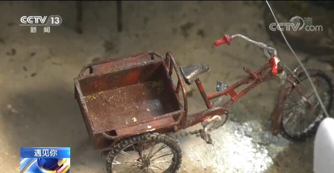 申鹏:这是我爷爷奶奶的院子,红砖红瓦墙上还贴着广告,门口这条青石路我小时候经常走,这个井盖不平,奶奶那时经常嘱咐我要绕着走。咱们进家看看,过年贴的对联有点褪色了,这是我爷爷上房用的梯子、奶奶扫院子用的扫帚,还有爷爷奶奶家唯一的交通工具三轮车,你觉得我是在故地重游吗?不,你看到的只是一个模型,但这模型里都是我满满的童年记忆。