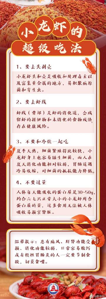 【食用死亡超2小时小龙虾易中毒?#吃小龙虾的是是非非#】又到了吃小龙虾的季节,夏季的小龙虾肥美多汁,令人垂涎欲滴,然而小龙虾食用不当也会引起中毒。那么#如何安全享用小龙虾#呢?这份超级吃法记得收藏哦。(来源:健康时报)