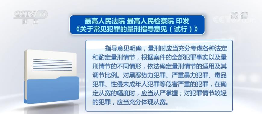 指导意见明确,量刑时应当充分考虑各种法定和酌定量刑情节,根据案件的全部犯罪事实以及量刑情节的不同情形,依法确定量刑情节的适用及其调节比例。对黑恶势力犯罪、严重暴力犯罪、毒品犯罪、性侵未成年人犯罪等危害严重的犯罪,在确定从宽的幅度时,应当从严掌握;对犯罪情节较轻的犯罪,应当充分体现从宽。