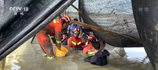 昨天上午10点多,消防救援人员达到现场,由于正值退潮期,海水水位较低。为营救瓜头鲸,多部门救援人员在滩涂上挖坑,让海水没过瓜头鲸身体,并用毛竹和塑料薄膜支起“遮阳棚”,同时为瓜头鲸身体浇水降温。