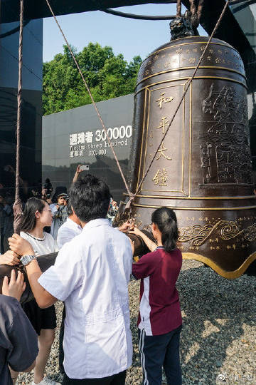 【#南京撞响和平大钟纪念全民族抗战爆发84周年#】“铛、铛、铛……”7日早上八点半,侵华日军南京大屠杀遇难同胞纪念馆举行了一场主题为“国殇难忘 警钟长鸣”——撞响和平大钟仪式。南京大屠杀幸存者后代、学生代表和观众代表等12人,撞响大钟13声,寓意牢记国耻、珍爱和平。