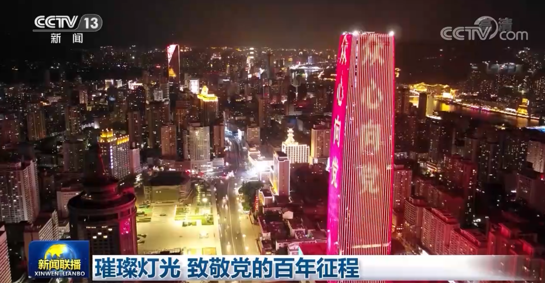 甘肃兰州全城地标性建筑灯光闪耀,整个城市熠熠生辉,体现出陇原儿女红心向党的坚定决心。海南海口的一栋栋楼宇被鲜艳的中国红点亮,“党在我心中,潮起新海南”等标语表达了椰城百姓一心向党的情怀。西藏拉萨用绚丽独特的灯光点亮高原,展示出千年古城拉萨的新发展新气象。