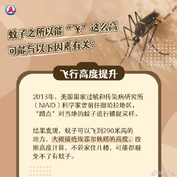 【#为什么住几楼都有蚊子#?】相关研究表明,#蚊子最高可以飞到290米高#的地方,大概接近埃菲尔铁塔的高度。按照这个数字计算,不管家住几楼,都避免不了有蚊子。你觉得哪层楼蚊子最多?你为了灭蚊都做了哪些努力?来评论区,聊一聊你是如何与蚊子斗争的。(来源:生命时报)