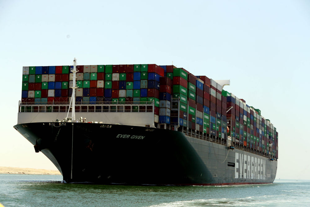 ↑这是7月7日在埃及伊斯梅利亚省拍摄的航行在苏伊士运河上的“长赐”号货轮。