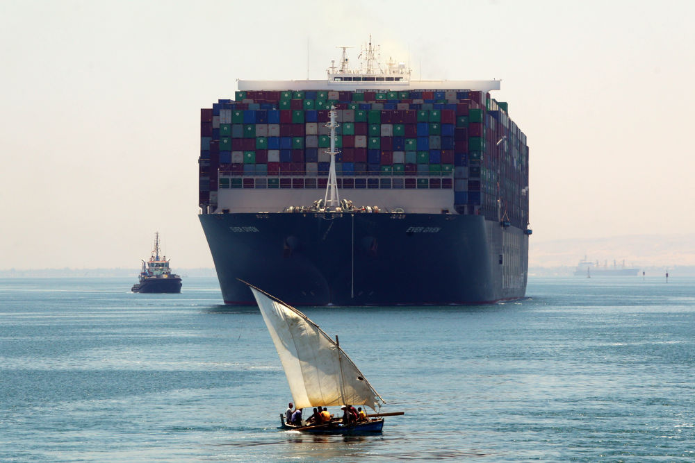 ↑这是7月7日在埃及伊斯梅利亚省拍摄的航行在大苦湖上的“长赐”号货轮。