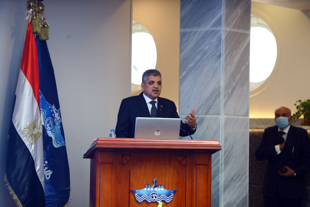 埃及苏伊士运河管理局主席乌萨马·拉比耶7月7日召开新闻发布会说,今年3月因搁浅造成苏伊士运河堵塞的“长赐”号货轮当天正式驶离运河。新华社报道员艾哈迈德·戈马摄影报道