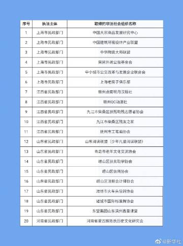 #民政部公布59家非法社会组织名单#【今年第六批!中华陶瓷大师联盟等#59家非法社会组织名单公布#】民政部8日公布第六批地方民政部门近年来依法取缔的部分非法社会组织名单,包括中华陶瓷大师联盟等59家非法社会组织。民政部提示,社会公众如果发现名单中的非法社会组织仍在开展活动的,可依法向公安机关报案。戳大图,谨防上当!(记者高蕾)