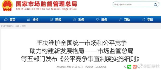 【#五部门发布公平竞争审查制度实施细则#】市场监管总局、国家发展改革委、财政部、商务部、司法部发布《公平竞争审查制度实施细则》,在审查方式、审查标准、监督手段等方面细化实化有关规定,统筹力度更大、审查标准更高、监督考核更严,将对全面落实公平竞争审查制度,推动形成高效规范、公平竞争的国内统一大市场,建设市场化法治化国际化的营商环境具有重要意义。(记者赵文君)