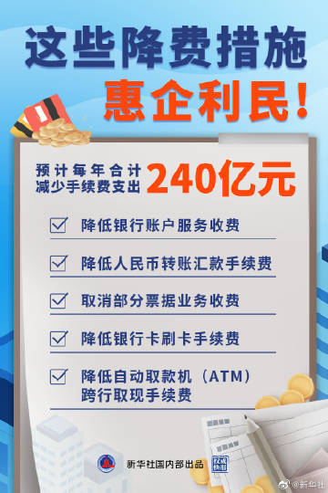 【#权威快报#|惠企利民!#降费措施预计每年合计减少手续费支出240亿元#】中国人民银行副行长范一飞8日在国务院政策例行吹风会上介绍,此次出台的降低小微企业和个体工商户支付手续费措施,为市场主体恢复元气、增强活力再帮一把。相关降费举措将于2021年9月30日起正式实施。此外,人民银行配合银保监会推出降低自动取款机(ATM)跨行取现手续费长期措施。这些措施实施后,预计每年为市场主体、社会公众减少手续费支出240亿元,其中惠及小微企业、个体工商户超过160亿元。(记者吴雨)