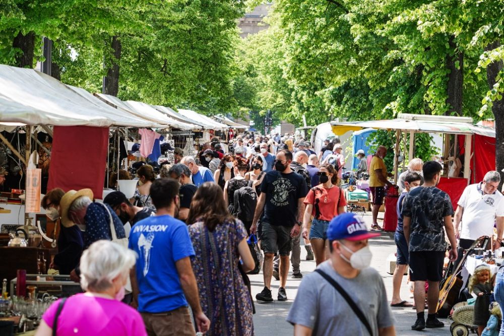6月6日,人们在德国首都柏林的一处“跳蚤市场”内购物。(新华社发,斯特凡·蔡茨摄)