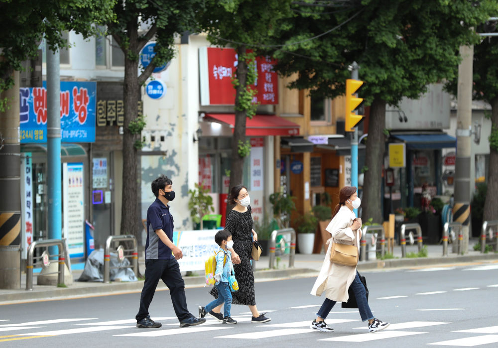5月26日,戴口罩的市民走在韩国首尔的街道上。(新华社记者王婧嫱摄)